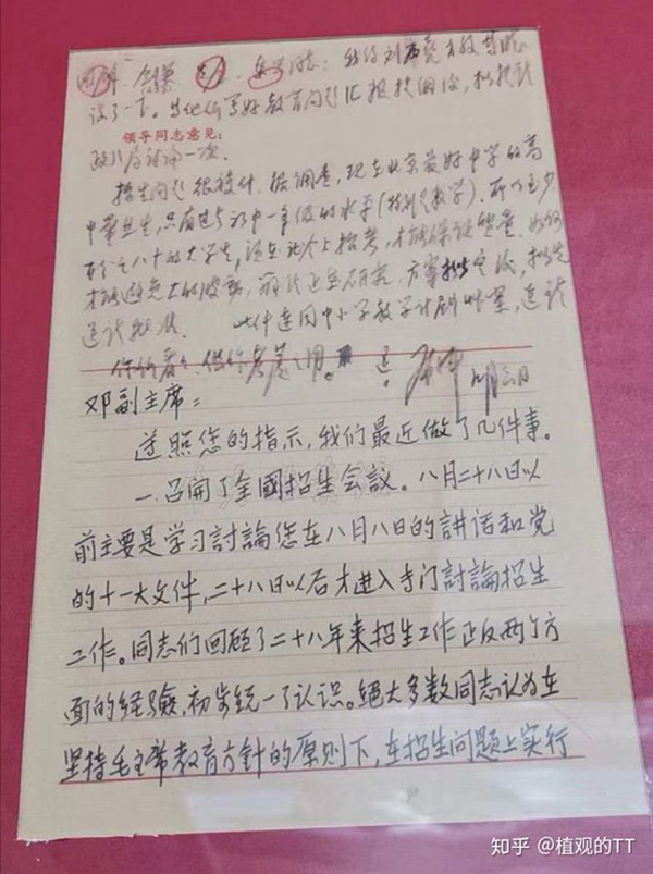 此前擬定的招生辦法為:“自愿報(bào)考,單位同意,統(tǒng)一考試,擇優(yōu)錄取”。小平同志大筆一揮,把“單位同意”這條劃掉。