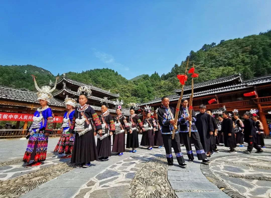 2019年10月2日,貴州黔東南苗族侗族自治州。苗族同胞在表演民族歌舞。作者:轉(zhuǎn)帖