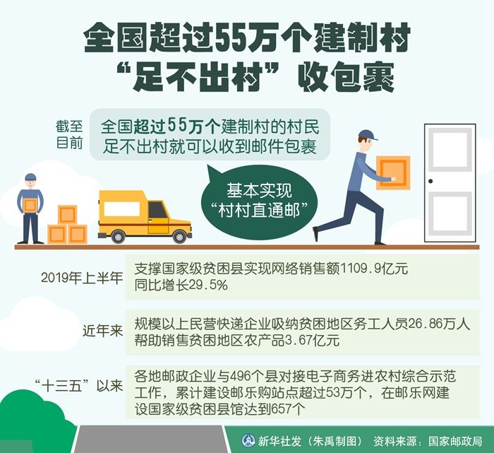 新華社北京10月23日電(記者 趙文君)“雙11”快遞旺季即將到來,記者23日從國家郵政局獲悉,截至目前,全國超過55萬個建制村的村民足不出村就可以收到郵件包裹,基本實現(xiàn)“村村直通郵”。郵政、快遞成為農(nóng)產(chǎn)品上行的重要力量,農(nóng)村寄遞實現(xiàn)了從“寄包裹”到“產(chǎn)包裹”的轉(zhuǎn)變,真正搞活了農(nóng)產(chǎn)品流通。