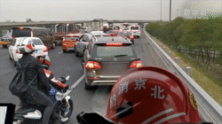 在北京,一輛消防車出警救援時被堵,兩名熱心騎手幫忙疏導(dǎo)交通。