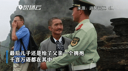 在貴州,一名堅守崗位的戰(zhàn)士身旁佇立著不舍離去的老父親,千言萬語化作一個深情的擁抱。