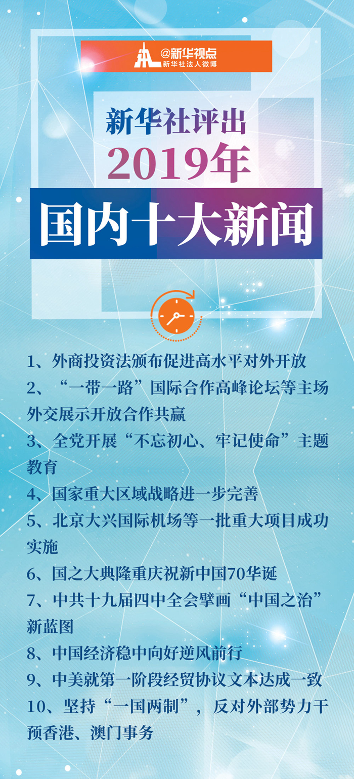 29日,新華社評出的2019年國內(nèi)十大新聞新鮮出爐。