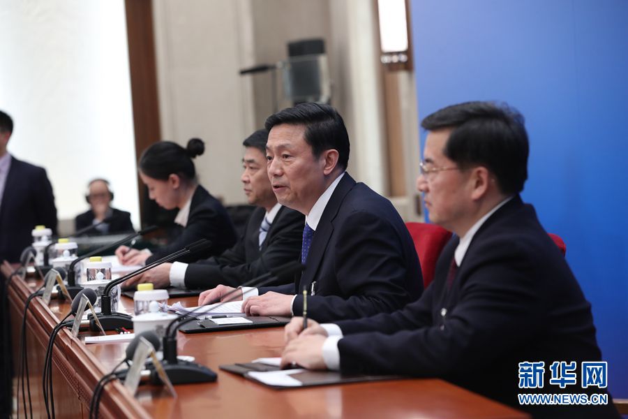 全國政協(xié)十三屆二次會(huì)議新聞發(fā)布會(huì)于3月2日15:00在人民大會(huì)堂一層新聞發(fā)布廳召開,大會(huì)新聞發(fā)言人郭衛(wèi)民向中外媒體介紹本次大會(huì)有關(guān)情況并回答記者提問。圖為新聞發(fā)言人郭衛(wèi)民(右二)介紹本次大會(huì)有關(guān)情況。新華網(wǎng)/中國政府網(wǎng) 翟子赫 攝