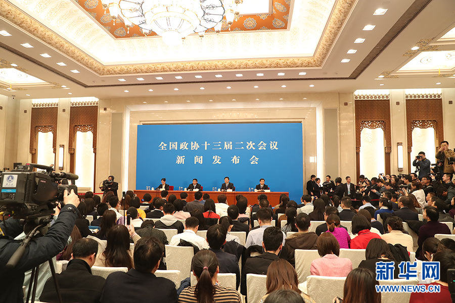 全國政協(xié)十三屆二次會議新聞發(fā)布會于3月2日15:00在人民大會堂一層新聞發(fā)布廳召開,大會新聞發(fā)言人郭衛(wèi)民向中外媒體介紹本次大會有關(guān)情況并回答記者提問。圖為新聞發(fā)布會現(xiàn)場。新華網(wǎng)/中國政府網(wǎng) 陳杰 攝