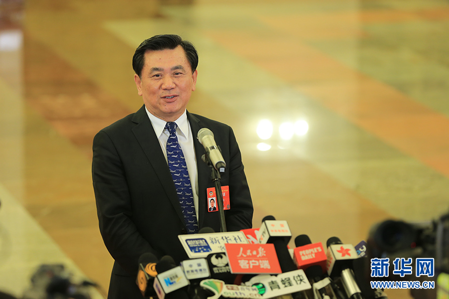 3月3日下午,全國(guó)政協(xié)十三屆二次會(huì)議開(kāi)幕會(huì)結(jié)束后,2019年全國(guó)兩會(huì)“部長(zhǎng)通道”在人民大會(huì)堂正式開(kāi)啟,部長(zhǎng)們?cè)谶@里直面熱點(diǎn),回應(yīng)關(guān)切。圖為中國(guó)民用航空局局長(zhǎng)馮正霖接受采訪。新華網(wǎng)/中國(guó)政府網(wǎng) 劉廈 攝