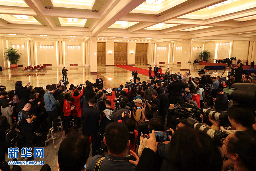 3月5日,第十三屆全國人民代表大會第二次會議在北京人民大會堂開幕。這是記者在“部長通道”采訪。新華網(wǎng)/中國政府網(wǎng) 劉廈攝