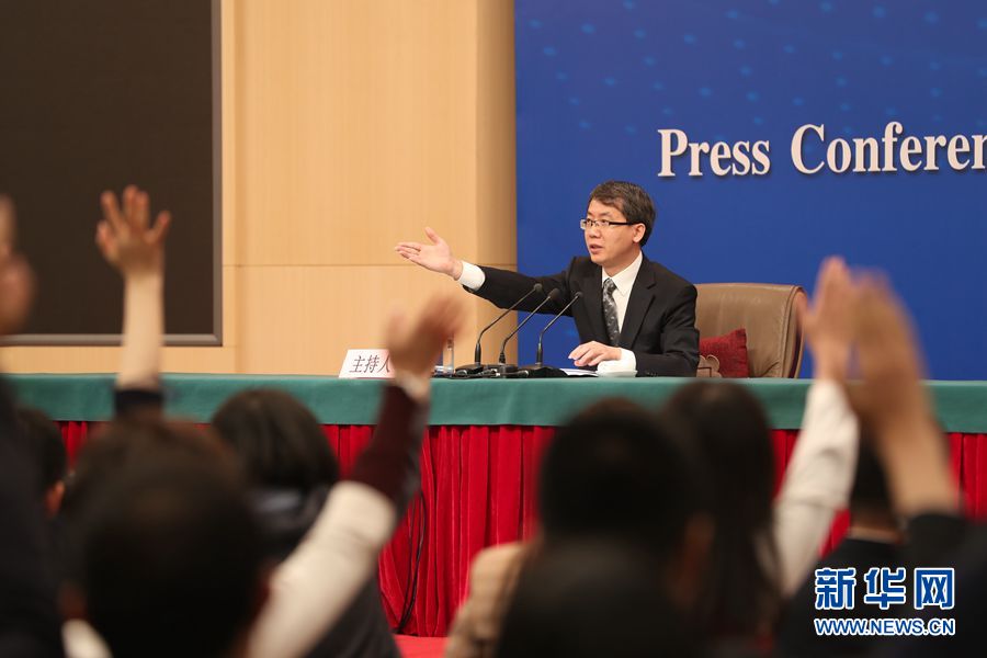 十三屆全國人大二次會議新聞中心于3月7日10時50分在梅地亞中心新聞發(fā)布廳舉行記者會,邀請國務院扶貧開發(fā)領導小組辦公室主任劉永富就“攻堅克難——堅決打贏脫貧攻堅戰(zhàn)”相關(guān)問題回答中外記者提問。圖為記者會主持人。新華網(wǎng) 陳杰 攝