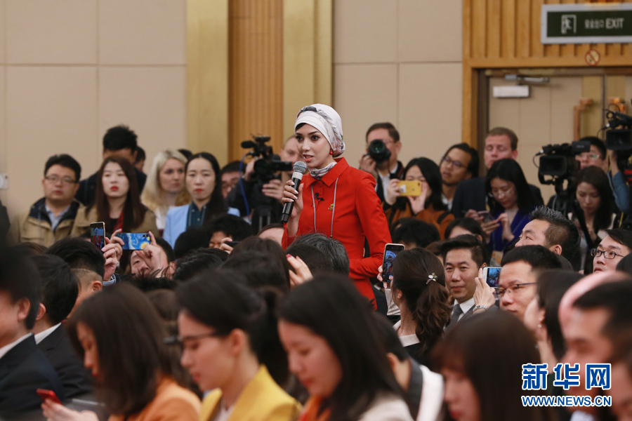 十三屆全國人大二次會議新聞中心3月8日10時在梅地亞中心新聞發(fā)布廳舉行記者會,邀請國務(wù)委員兼外交部長王毅就“中國外交政策和對外關(guān)系”相關(guān)問題回答中外記者提問。圖為中阿衛(wèi)視記者。新華網(wǎng)/中國政府網(wǎng) 馬娟 攝