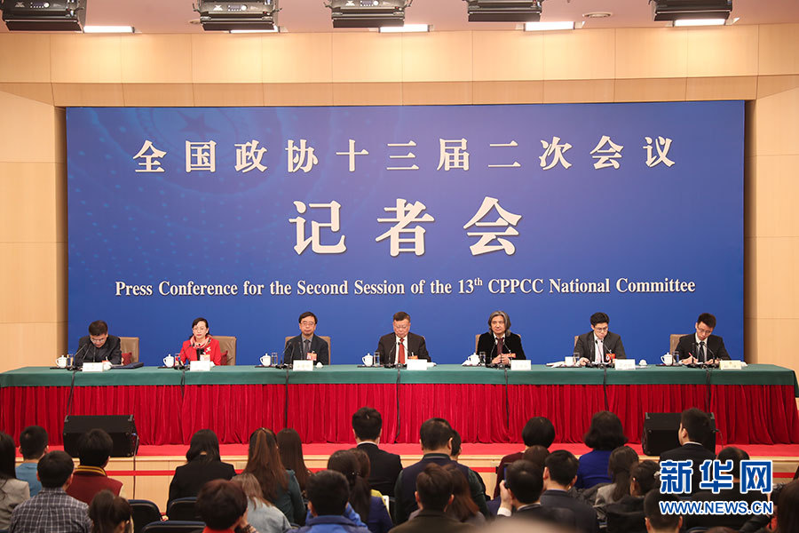 全國(guó)政協(xié)十三屆二次會(huì)議3月10日(星期日)上午8:45在梅地亞兩會(huì)新聞中心舉行記者會(huì),邀請(qǐng)5位政協(xié)委員就“新時(shí)代政協(xié)履職”回答記者提問(wèn)。圖為記者會(huì)現(xiàn)場(chǎng)。新華網(wǎng)、中國(guó)政府網(wǎng)進(jìn)行現(xiàn)場(chǎng)直播。新華網(wǎng)/中國(guó)政府網(wǎng) 劉廈攝