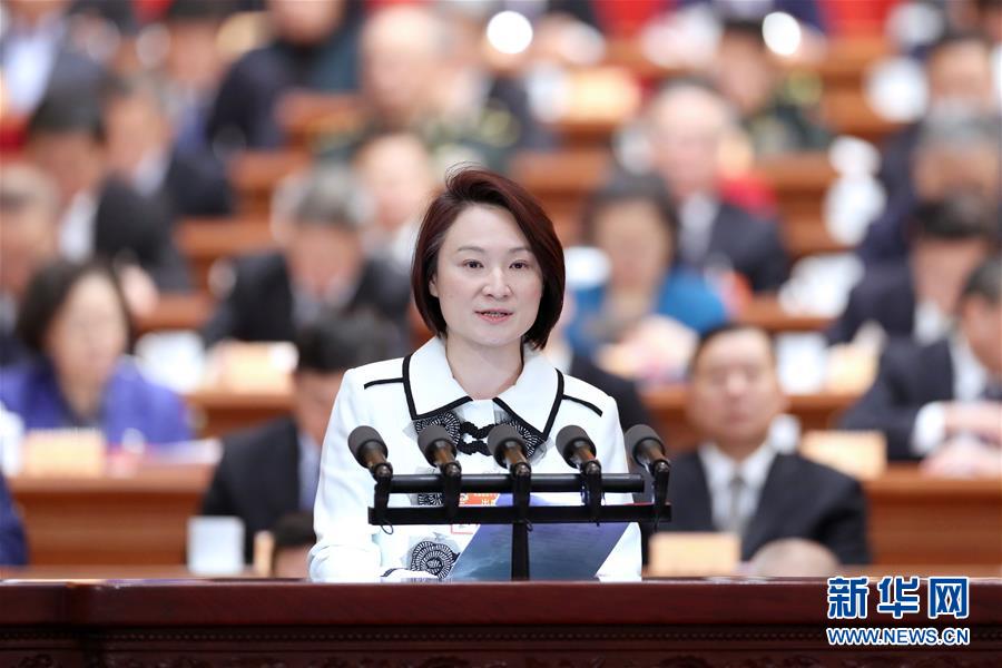 3月11日,全國政協(xié)十三屆二次會議在北京人民大會堂舉行第四次全體會議。這是李慧瓊委員作大會發(fā)言。 新華社記者 丁海濤 攝
