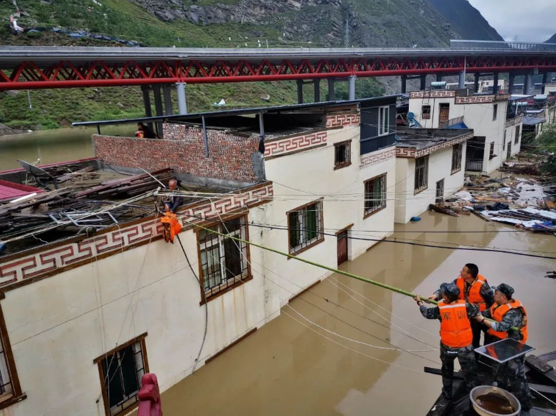 某地農(nóng)村發(fā)生山洪泥石流災(zāi)害 ,救援人員為受災(zāi)群眾送去救生衣 余羌 攝