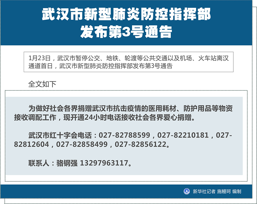圖表:武漢市新型肺炎防控指揮部發(fā)布第3號(hào)通告 新華社記者 施鰻珂 編制