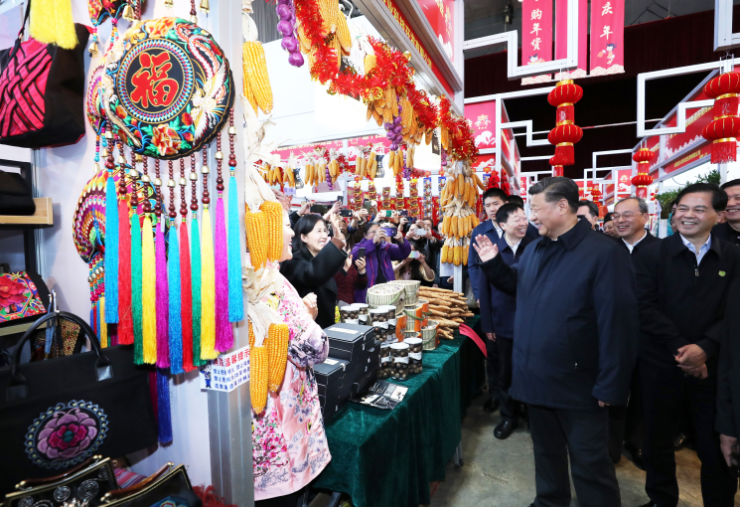 臘月廿六(20日下午),離除夕僅四天,習(xí)近平來到第十四屆中國(guó)昆明新春購物博覽會(huì)舉辦地——昆明國(guó)際會(huì)展中心,了解年貨市場(chǎng)供應(yīng)及國(guó)內(nèi)外商品展銷情況,這里被當(dāng)?shù)厝朔Q作“關(guān)上年貨節(jié)”。