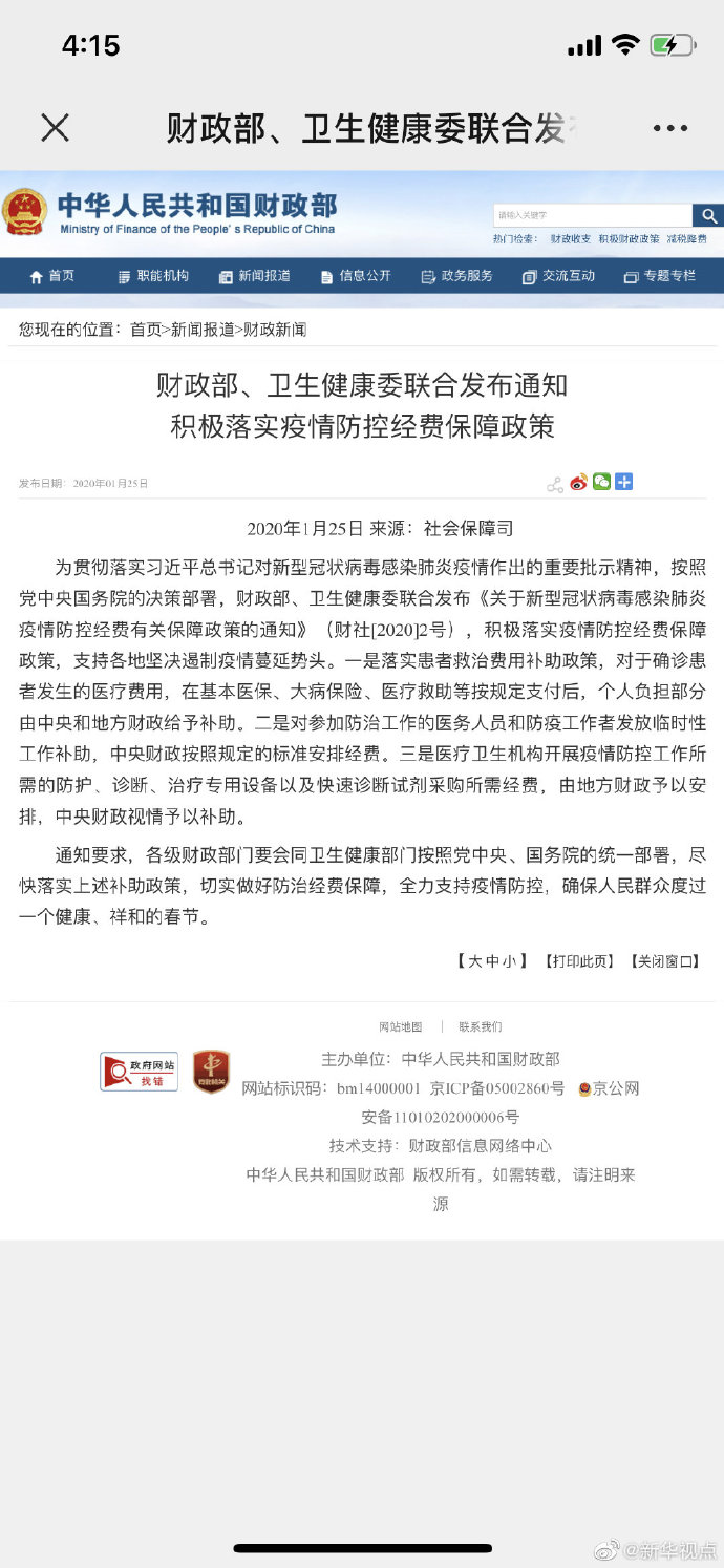 記者25日從財(cái)政部獲悉,財(cái)政部、衛(wèi)生健康委聯(lián)合發(fā)布通知,對于確診患者發(fā)生的醫(yī)療費(fèi)用,在基本醫(yī)保、大病保險(xiǎn)、醫(yī)療救助等按規(guī)定支付后,個(gè)人負(fù)擔(dān)部分由中央和地方財(cái)政給予補(bǔ)助。對參加防治工作的醫(yī)務(wù)人員和防疫工作者發(fā)放臨時(shí)性工作補(bǔ)助,中央財(cái)政按照規(guī)定的標(biāo)準(zhǔn)安排經(jīng)費(fèi)。醫(yī)療衛(wèi)生機(jī)構(gòu)開展疫情防控工作所需的防護(hù)、診斷、治療專用設(shè)備以及快速診斷試劑采購所需經(jīng)費(fèi),由地方財(cái)政予以安排,中央財(cái)政視情予以補(bǔ)助。(記者郁瓊源)