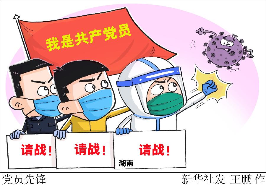 面對(duì)疫情,黨員干部紛紛請(qǐng)戰(zhàn)。 新華社發(fā) 王鵬 作