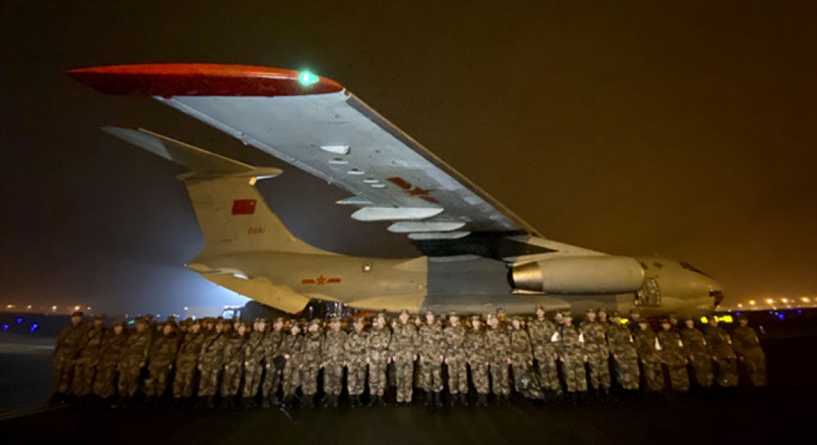 1月24日晚,由陸軍軍醫(yī)大學(xué)抽調(diào)精干醫(yī)務(wù)人員組建的醫(yī)療隊(duì)在重慶江北國際機(jī)場停機(jī)坪集結(jié),準(zhǔn)備連夜馳援武漢。 新華社發(fā)