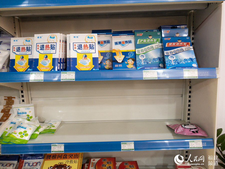 “一罩難求。”記者走訪了南靖縣多家藥店,都聽到了同樣的說法。在一些藥店,除了醫(yī)用口罩以外,連酒精、消毒液、感冒藥、溫度計(jì)等也都售空。