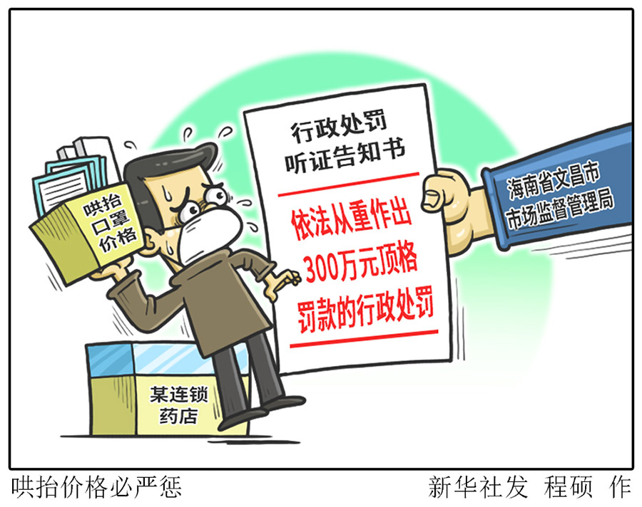 新華社???月6日電(記者吳茂輝)記者6日從海南省市場監(jiān)督管理局獲悉,近日,海南一九堂藥品連鎖經(jīng)營有限公司因哄抬價格,被文昌市市場監(jiān)督管理局下達(dá)《行政處罰聽證告知書》。根據(jù)這份告知書,這家公司將被罰300萬元。