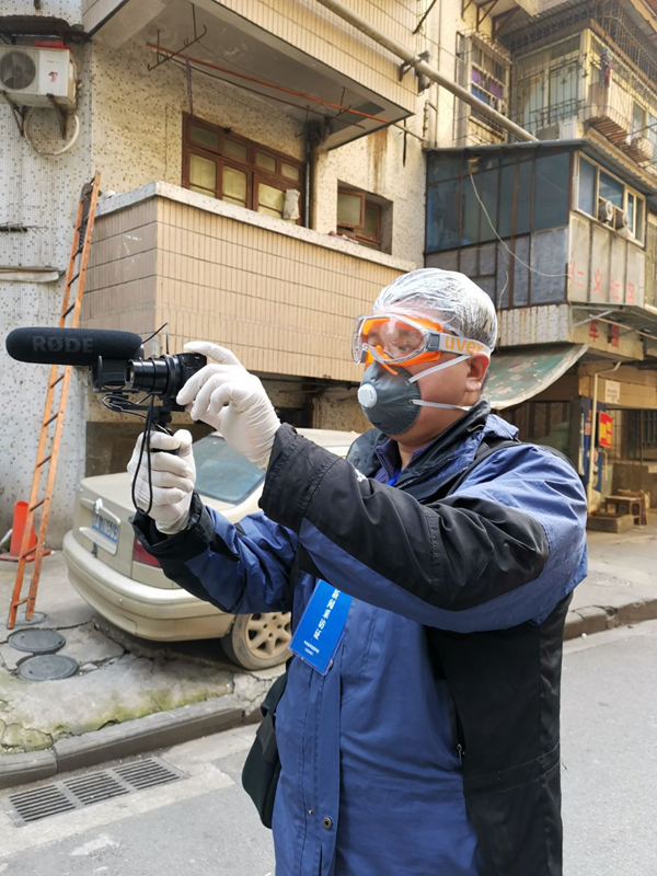 每次出門采訪都如臨大敵:先換好外出的衣裳、戴好醫(yī)用手套、戴好護(hù)目鏡,然后再小心翼翼地在臉上加上一個或兩個口罩,在門口換上出門的鞋,最后再背上采訪設(shè)備——每次做完這些的時候,作為胖子的我身上已經(jīng)開始冒汗并且氣喘吁吁。如果要去醫(yī)院采訪,有時候還要再穿上一件防護(hù)服。這樣的裝備,出門走一圈其實已經(jīng)很難受了,而我還要隔著不斷產(chǎn)生霧氣的護(hù)目鏡拍照,要不斷地移動、尋找最好的拍攝角度和位置,采訪的時候更要記下一個個口罩后面的名字、故事......這樣的采訪狀態(tài)對我而言,從未曾經(jīng)歷過——多年前,我曾在利比亞做過戰(zhàn)地記者,也曾被武裝分子用槍指著腦袋,但這次在武漢,我不知道那些危險的“敵人”究竟藏在何方,也許就在無處不在的空氣里!