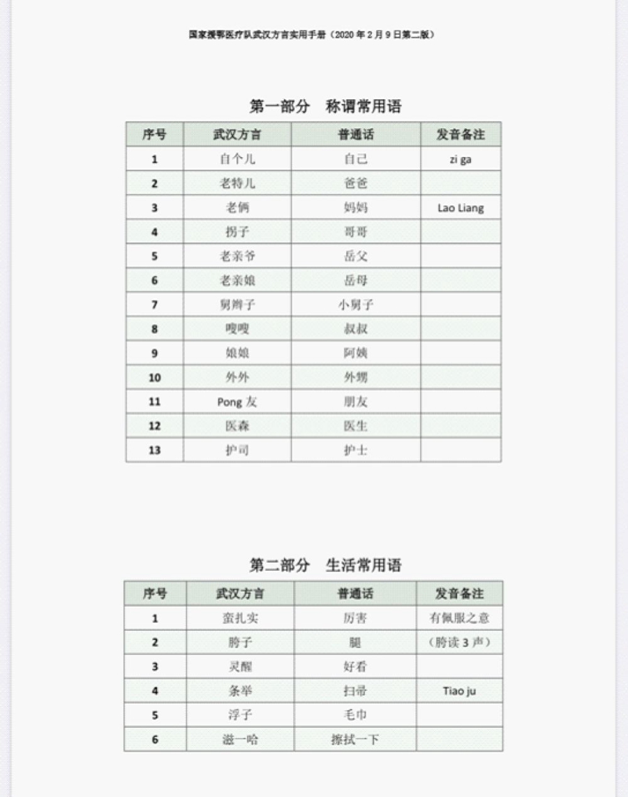 《國(guó)家援鄂醫(yī)療隊(duì)武漢方言實(shí)用手冊(cè)》