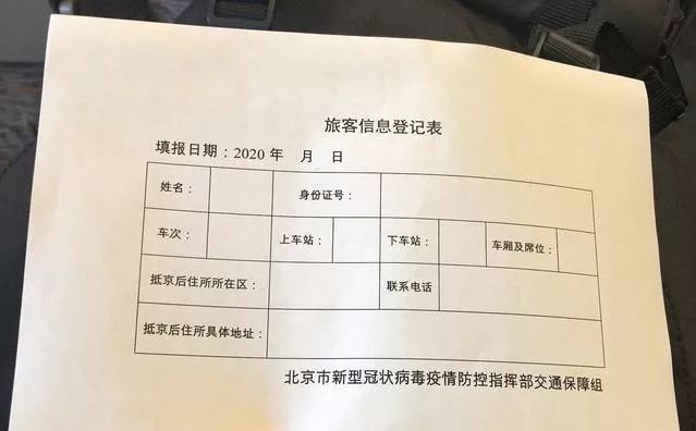 △外地抵京的鐵路乘客須填寫《旅客信息登記表》