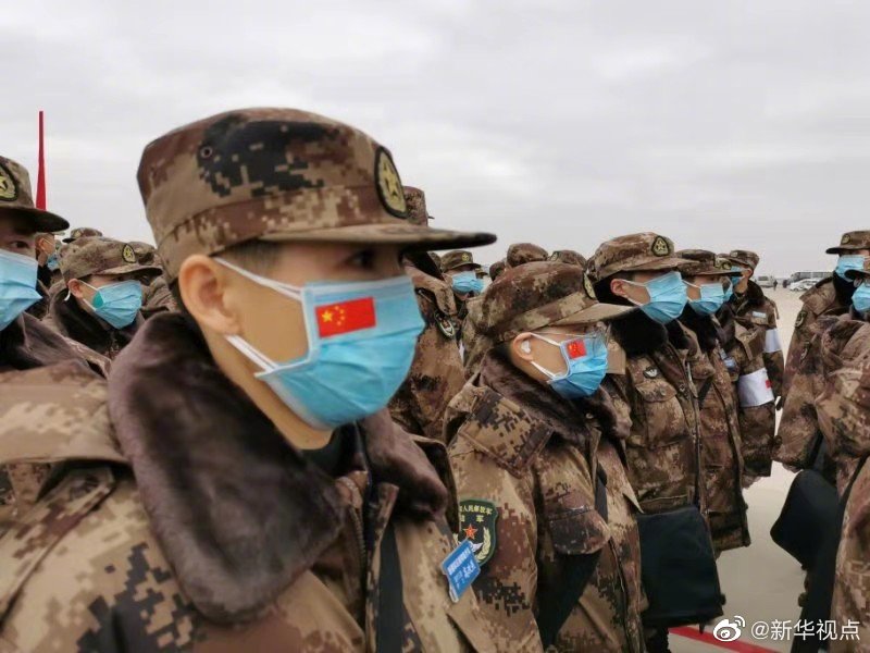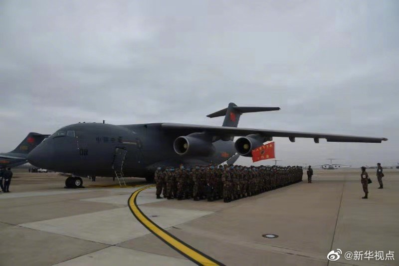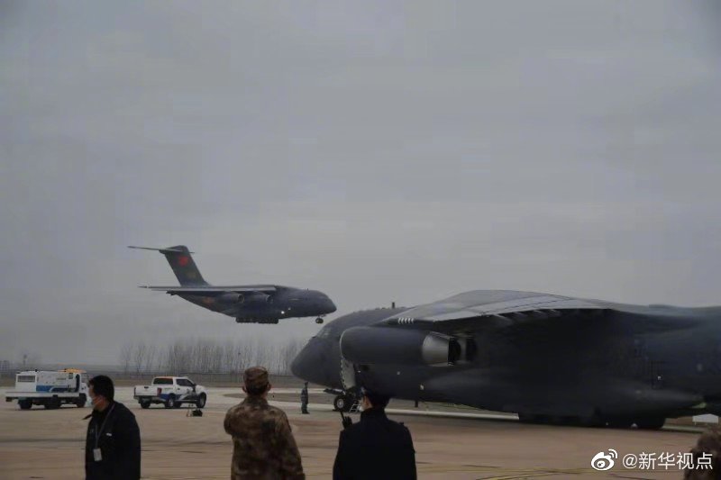 軍隊(duì)增派2600名醫(yī)護(hù)人員支援武漢抗擊新冠肺炎疫情。國產(chǎn)大型運(yùn)輸機(jī)運(yùn)-20“胖妞”首次參加非戰(zhàn)爭軍事行動(dòng)。13日,空軍出動(dòng)3型11架運(yùn)輸機(jī)多地同步向武漢空運(yùn)醫(yī)療隊(duì)員抵達(dá)武漢天河機(jī)場。(新華社記者黎云攝) ????