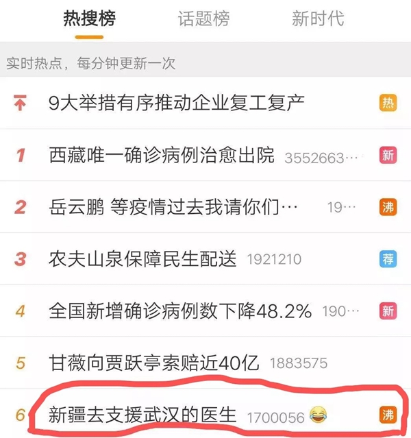 昨天,新疆去支援武漢的醫(yī)生話題猝不及防地上了微博熱搜。