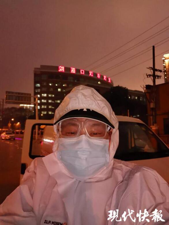 正式“工作”后,我接送的第一批疑似病人,是家住長江邊某小區(qū)的一對夫妻,發(fā)熱、咳嗽。有時(shí)也會接到運(yùn)送輕癥和重癥病人轉(zhuǎn)院的任務(wù)。9 日晚上,我往返了好幾趟,將 4 名輕癥病人、6 名重癥病人,從江岸區(qū)的集中隔離點(diǎn)和小型醫(yī)院,轉(zhuǎn)移到武展“方艙醫(yī)院”和金銀潭醫(yī)院住院治療。從 9 日晚 8 點(diǎn)半一直忙到 10 日凌晨 1 點(diǎn)。