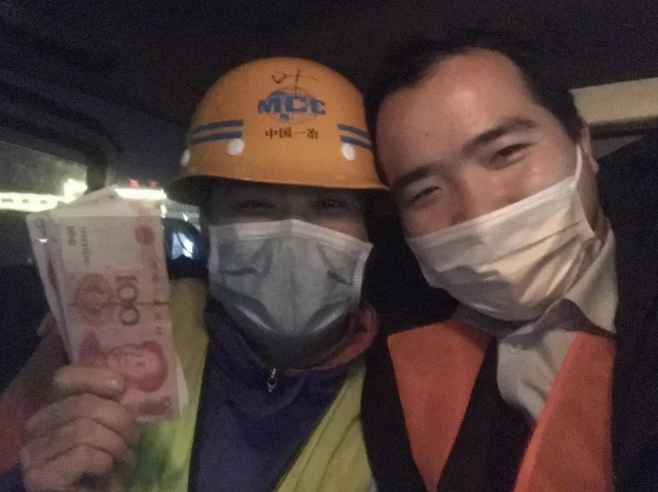 這張是在雷神山工地的一位大叔,拿到工資挺高興的,他說(shuō)他要立馬轉(zhuǎn)回去給家里,讓家人去買(mǎi)菜。