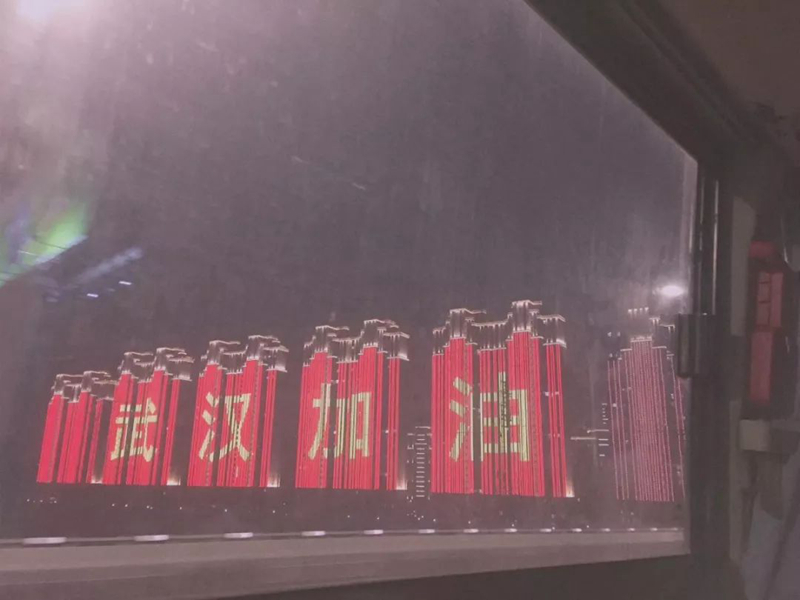 氣溫大概只有4℃,市區(qū)里空空蕩蕩,寂靜無(wú)聲??吹浇诌叺木薹娮悠辽厦鎸?xiě)著:“武漢加油”,心里突然有了股勁兒。