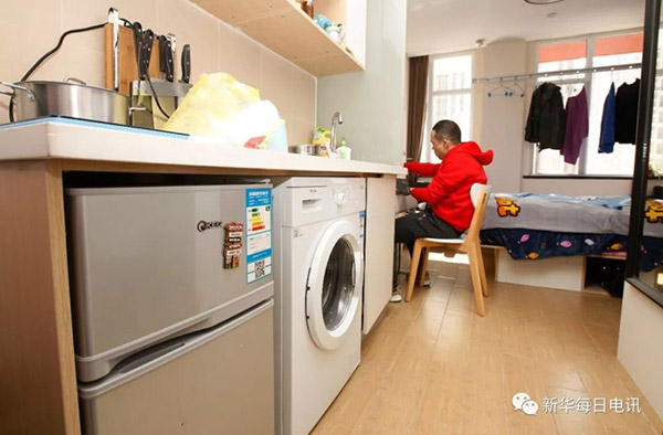 某長(zhǎng)租公寓內(nèi),租客李苗在自己的房間內(nèi)吃早飯。新華社記者譚慧婷 攝