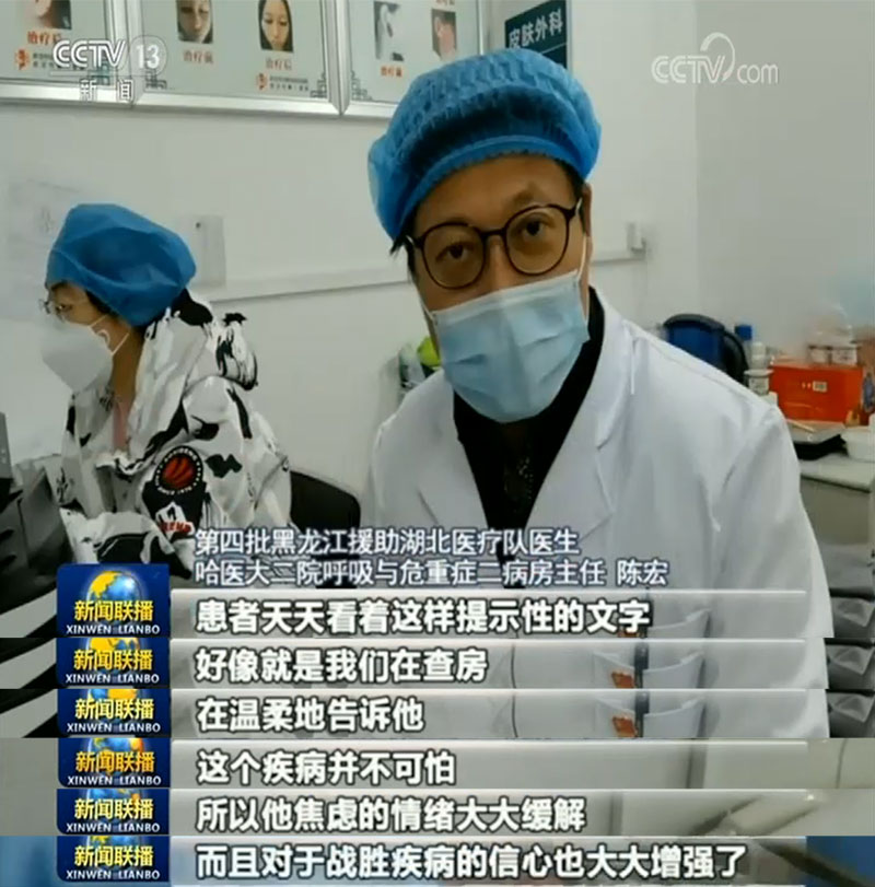 “繼續(xù)努力,早日出院”“新冠必?cái)。貏佟薄皥?jiān)持就是勝利”,在武漢市第一醫(yī)院16樓重癥病區(qū),幾乎每位患者床頭都貼有一張寫著鼓勵(lì)話語(yǔ)的淡粉色紙卡,而這些都出自前來(lái)支援的哈爾濱醫(yī)科大學(xué)附屬第二醫(yī)院呼吸科陳宏醫(yī)生之手。