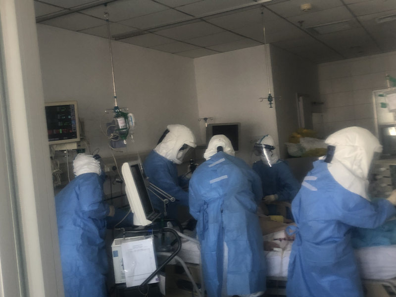 孫兵開始夜以繼日地沖鋒在一線,與死神“角力”。每天早晨,孫兵早早就坐在查房室開始查房,從呼吸機機械通氣策略到ECMO并發(fā)癥的預防,從抗生素的選擇到出入量目標管理,從鎮(zhèn)靜鎮(zhèn)痛到血栓預防,從營養(yǎng)支持到血糖控制,孫兵為每一名患者制定了全面而細致的治療方案,同時,根據每名患者不同情況提出明確而嚴格的目標要求。查房后,他依然要穿上防護服進入隔離病房進行查體、吸痰和具體指導,直到下午1點左右才能出來吃午飯。下午3點與專家討論結束后,再次進入隔離病房,查體、吸痰、操作,檢查治療方案是否落實、目標是否達到,直到晚上8點多才出來。晚上9點多回到酒店后,他的工作尚不能結束,他還要總結、反思患者的各項治療與效果。