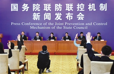 3月7日,國務(wù)院聯(lián)防聯(lián)控機(jī)制新聞發(fā)布會現(xiàn)場,介紹農(nóng)民工返崗復(fù)工服務(wù)保障工作部署。新京報記者 吳寧 攝