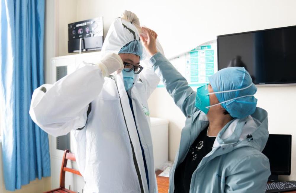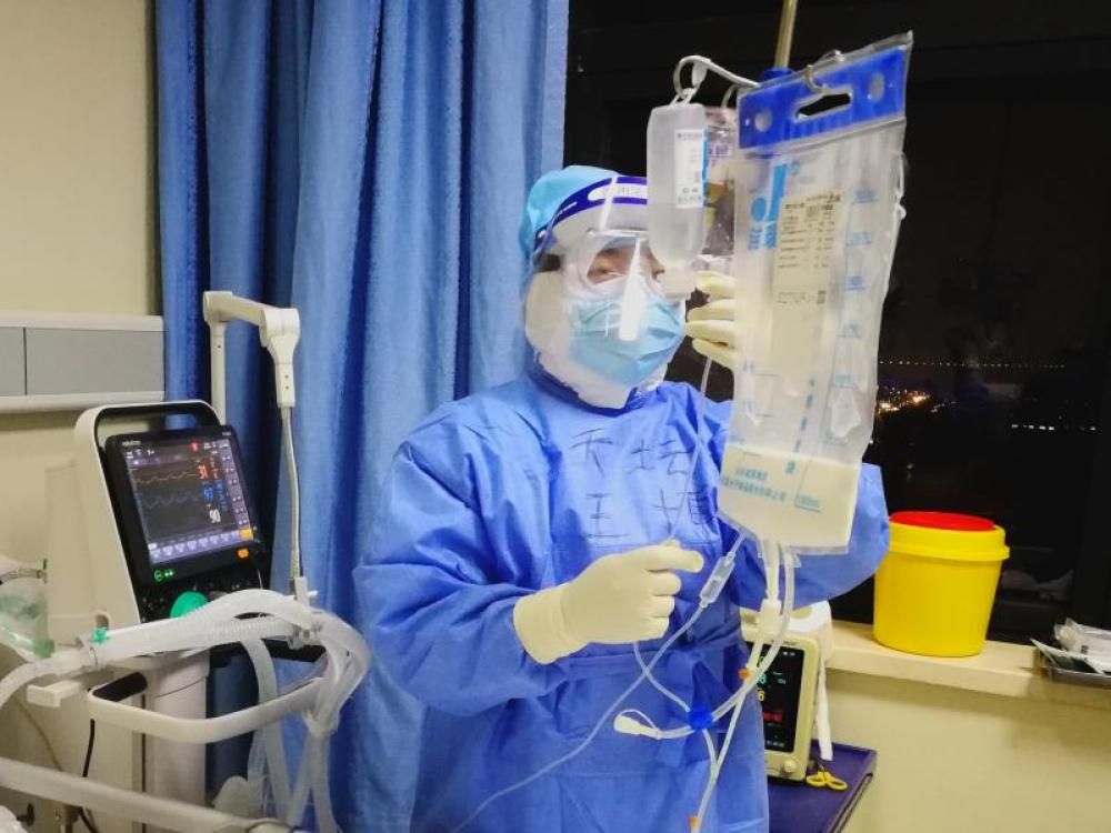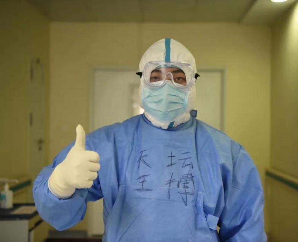 圖為北京天壇醫(yī)院支援武漢醫(yī)療隊(duì)王博在準(zhǔn)備工作中。