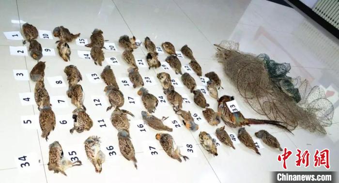圖為犯罪嫌疑人自制的獵網(wǎng)與非法獵捕的斑翅山鶉。呼倫貝爾市檢察院供圖