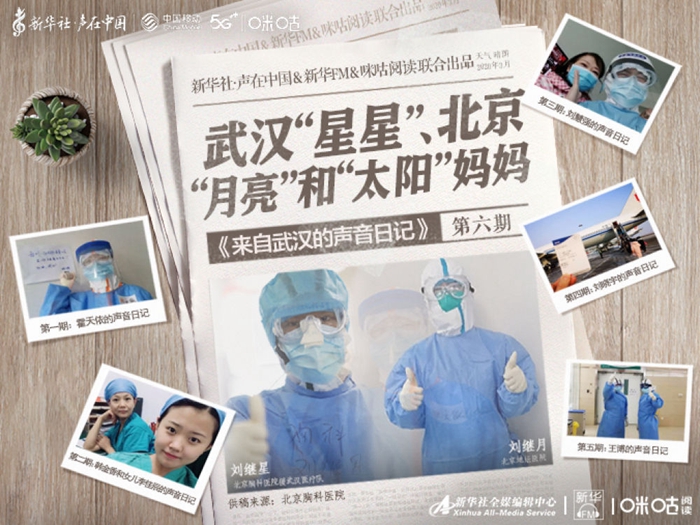 點擊收聽來自武漢的聲音日記第六期。今天講述這樣的一家人。哥哥叫劉繼星,是北京胸科醫(yī)院援武漢醫(yī)療隊成員,妹妹叫劉繼月,奮戰(zhàn)在北京地壇醫(yī)院ICU病房。而他們的媽媽也曾是醫(yī)務人員,退休前就職于北京地壇醫(yī)院順義院區(qū),參加過抗擊非典疫情。一起來聽他們的故事。