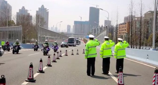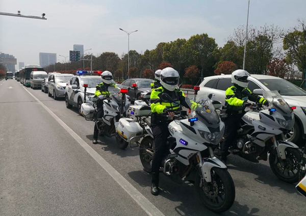 武漢交警全程警車開道