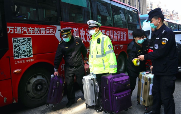一大早,武昌區(qū)交通大隊(duì)副大隊(duì)長熊志軍帶領(lǐng)戰(zhàn)友趕到青海援鄂醫(yī)療隊(duì)駐地。送醫(yī)療隊(duì)到機(jī)場的有5輛大巴車,由于駐地酒店入口較小,需要提前到達(dá)現(xiàn)場,逐一清理路邊停放的車輛。