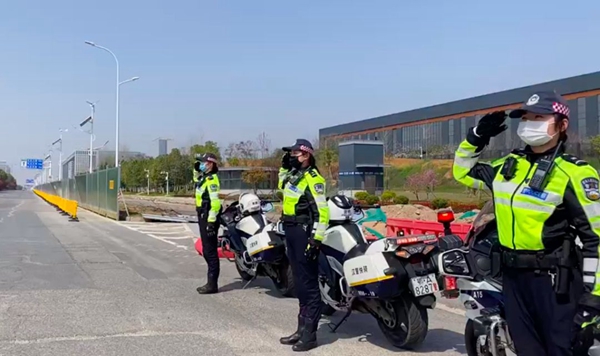 車輛沿途經(jīng)過的主要路口均有民警輔警現(xiàn)場值守