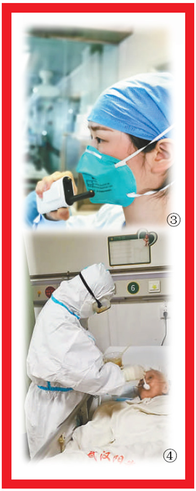 3月16日中午下班時,聽說病房里的百歲老人王婆婆下午就要出院了,武漢市第三醫(yī)院“90后”ICU護士陳奕(圖④)著實高興了好一陣子。