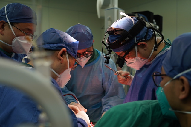 隨即,協(xié)和醫(yī)院以心臟大血管外科主任董念國教授、夏家紅教授為首的專家團隊,穿著厚厚的防護服施行心臟移植手術(shù)。終于,晚上9點27分,這顆一路狂奔的心臟順利安放至11歲女孩欣欣(化名)的胸腔中,重新有力地跳動起來。