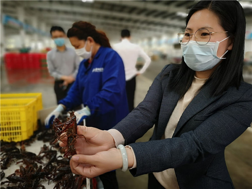 中國(guó)小龍蝦交易中心工作人員王麗晴介紹