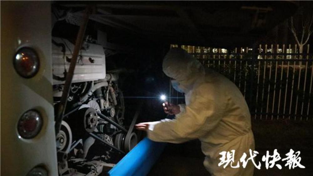然而,陳強(qiáng)想起剛來的半個月,與現(xiàn)在的氛圍完全不同?!耙f我不害怕,那肯定不現(xiàn)實?!标悘?qiáng)告訴現(xiàn)代快報記者,剛開始的半個月,他整個人都處于緊繃的狀態(tài),防護(hù)服裹得緊緊的,也不敢與車上的醫(yī)護(hù)人員有過多的交流?!坝幸淮挝医恿?0名醫(yī)護(hù)人員,座位全部坐滿了,當(dāng)時緊張極了?!彪S著疫情的好轉(zhuǎn),陳強(qiáng)也慢慢放下心來,他與醫(yī)護(hù)人員熟悉起來,之間也多了不少互動。