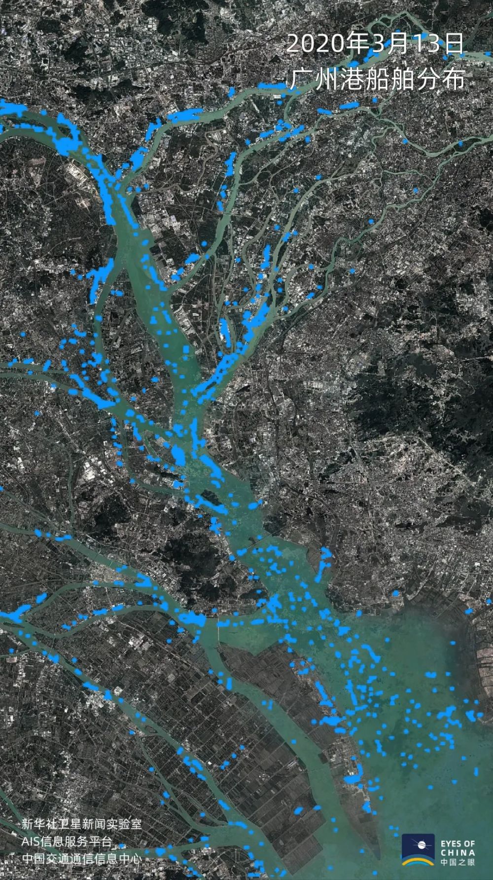 廣州港,貨物吞吐量全球港口第五位,珠三角“中國制造”輸出地。相比2月1日,3月中旬,正處在珠江口、即將駛?cè)氪笱蠡蛉敫鄣拇皵?shù)量明顯增加。