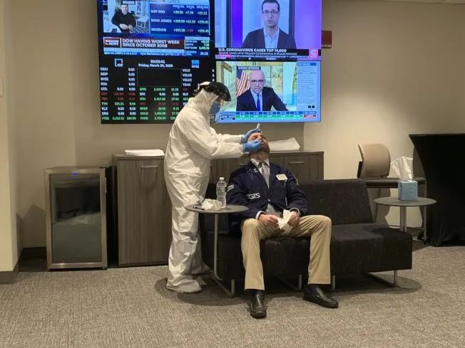 志愿者醫(yī)生為疑似新冠感染者作鼻咽喉拭子檢測。(陳揚(yáng)洺 供圖)