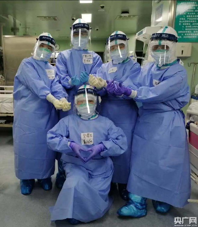 在武漢協(xié)和醫(yī)院西院區(qū)ICU支援的醫(yī)療隊隊員們(央廣網(wǎng)發(fā) 院方供圖)