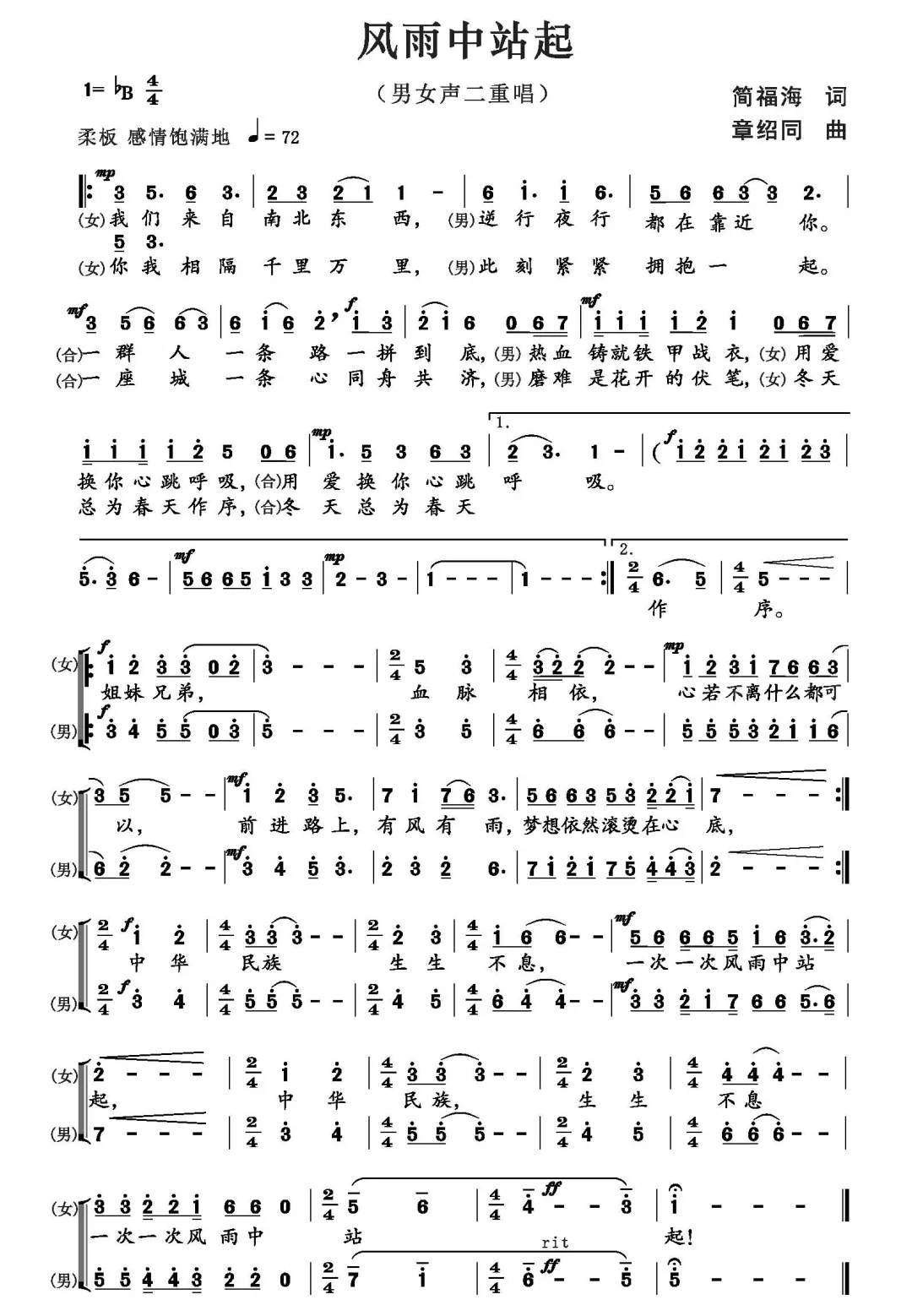 近日,由簡福海作詞,著名作曲家章紹同作曲,知名音樂制作人江洋編曲,著名青年歌唱家喻越越、著名青年歌唱家湯非聯(lián)袂獻(xiàn)聲的公益歌曲《風(fēng)雨中站起》正式上線。該歌曲由福建省文化和旅游廳監(jiān)制,福建省歌舞劇院和福建音樂推廣協(xié)會(huì)出品。