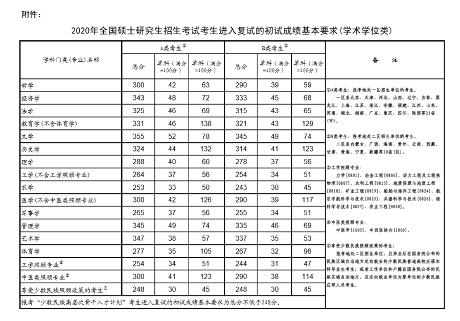 今日,教育部公布《2020年全國(guó)碩士研究生招生考試考生進(jìn)入復(fù)試的初試成績(jī)基本要求》(國(guó)家分?jǐn)?shù)線),并印發(fā)通知,就做好2020年全國(guó)碩士研究生復(fù)試工作進(jìn)行部署。