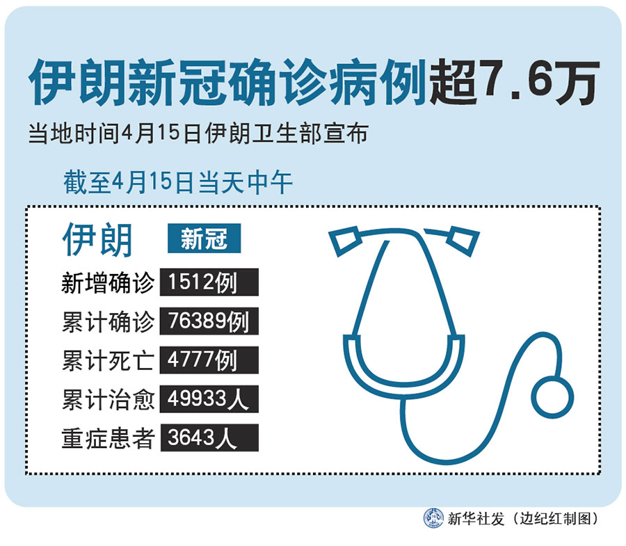 新華社德黑蘭4月15日電(記者陳霖)伊朗衛(wèi)生部15日宣布,截至當天中午,伊朗新增新冠確診病例1512例,累計確診達76389例,累計死亡病例4777例,累計治愈49933人,目前尚有重癥患者3643人。